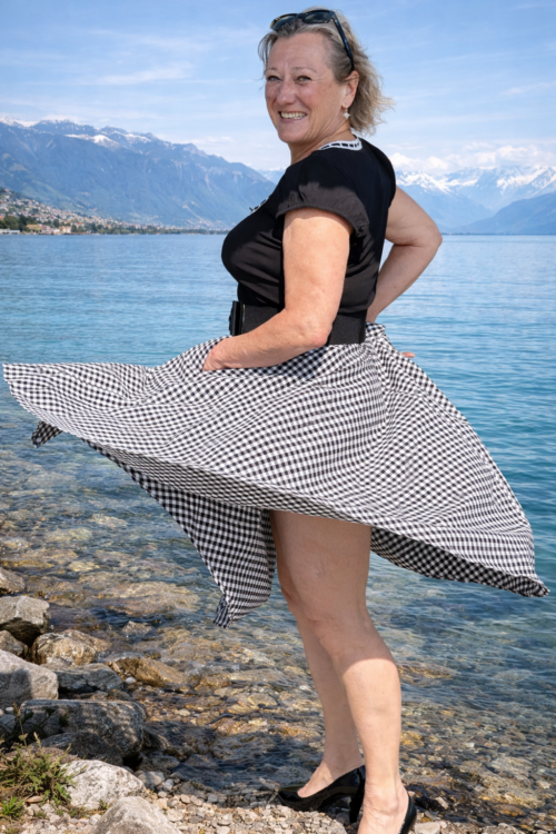 Son motif vichy intemporel apporte une touche rétro chic qui s’associe facilement avec de nombreux hauts : un cardigan vintage, un top coloré ou un chemisier rétro. Grâce à son tissu confortable et à sa coupe fluide, elle est parfaite pour danser, se promener ou simplement adopter un style pin-up élégant au quotidien.
