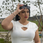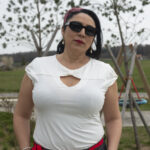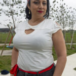 Top blanc élégant au charme rétro, avec une encolure délicatement ornée d’un petit nœud. Parfait pour un look pin-up chic et féminin au quotidien.