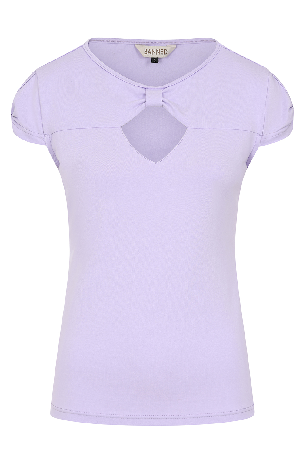 Top lilas élégant au charme rétro, avec une encolure délicatement ornée d’un petit nœud. Parfait pour un look pin-up chic et féminin au quotidien.